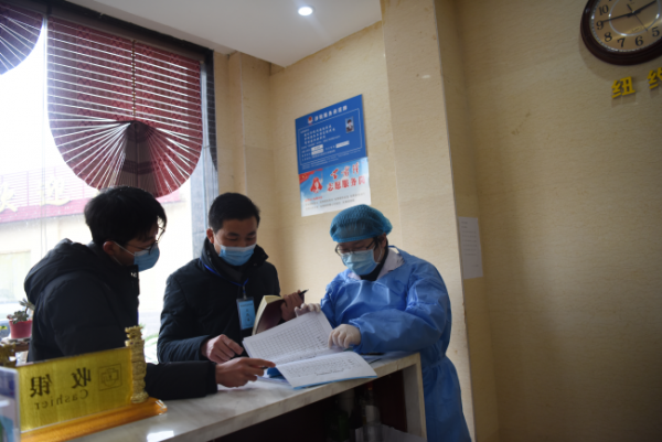 督导组工作人员到酂阳街道杨寨村,查看社区医疗物质配备、疫情防控台账、返鄂居家健康监测情况。