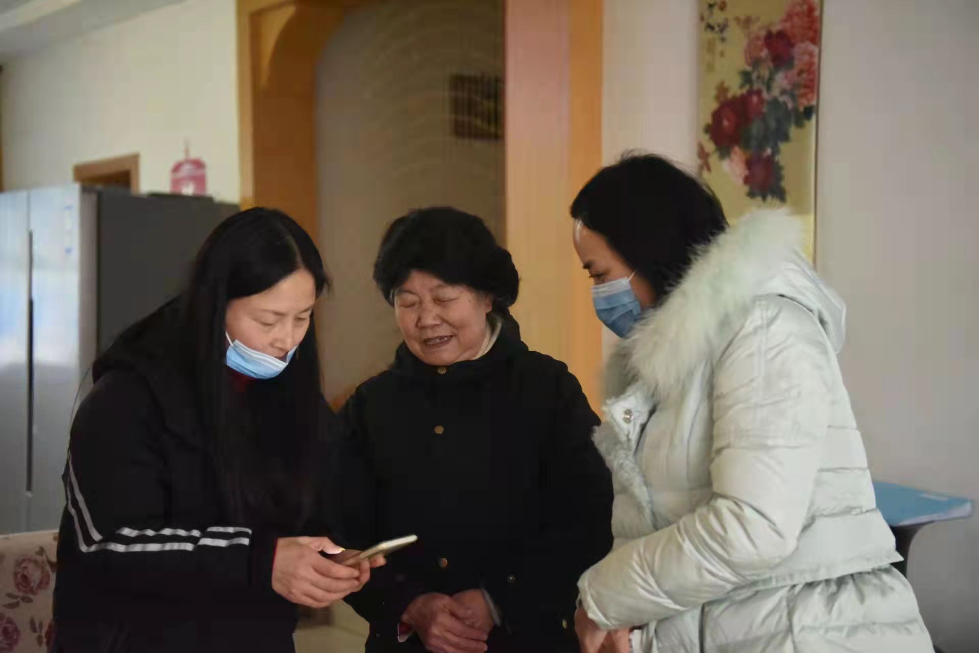 图为女纪检干部深入退休同志家中,帮助退休同志解决生活困难。