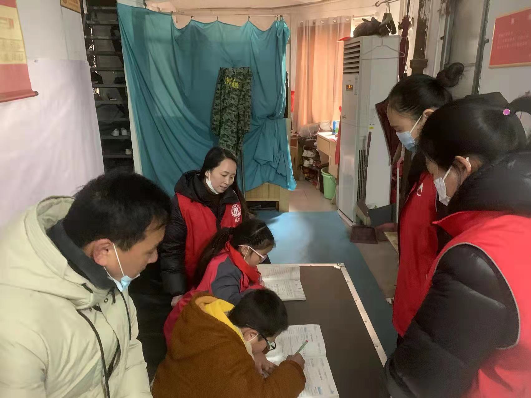 图为老河口市酂阳街道东启街社区纪检委员到居民家中检查疫苗接种情况,并关心关爱留守儿童。