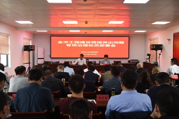 图为老河口召开全市工程建设领域突出问题专项治理动员部署会,督促9家牵头部门同步开展专项行动,“清仓式”起底工程建设领域突出问题