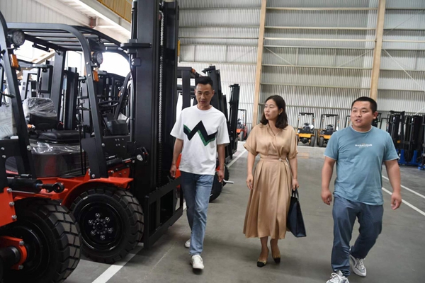 图为老河口市项目监督员到中力电动叉车老河口生产基地,现场跟进监督,督促相关单位依规依纪依法开展项目建设