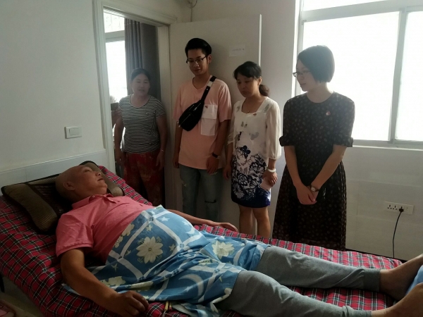 活动中,志愿者们看望了因车祸瘫痪在床4年的50余岁居民杨富才,为他家送去了米面油等物资,并亲切地与他交谈,了解他的生活情况,并鼓励他注意身体,乐观生活。
