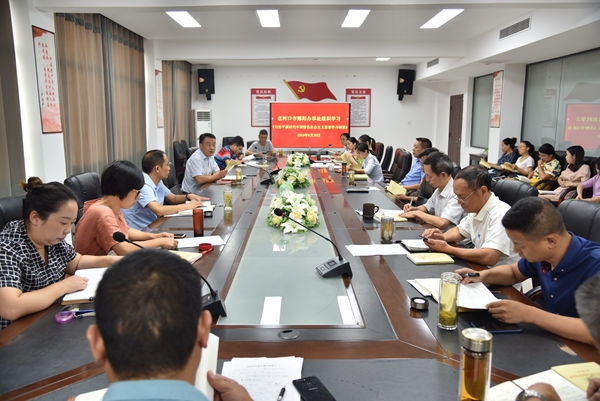 本网讯(通讯员 李志强)8月30日下午,酂阳办事处组织机关全体工作人员及在机关办公的民政、计生、城建等部门工作人员,在机关七楼小会议室召开星期五集中学习例会,认真学习《习近平新时代中国特色社会主义思想学习纲要》(如图)。酂阳办人大联络处主任王静主持学习例会。