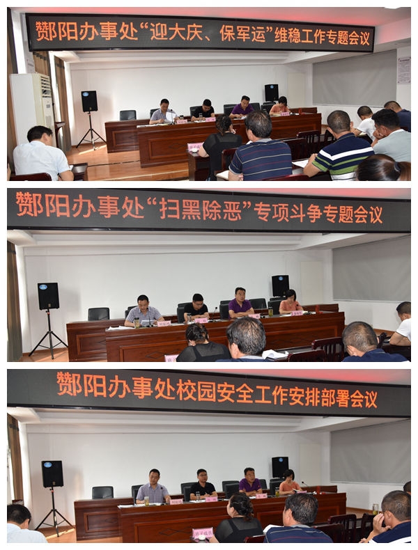 本网讯(通讯员 李志强)9月8日上午,酂阳办事处召开“迎大庆、保军运”维稳暨深化扫黑除恶专项斗争工作会议,传达学习上级有关会议精神,对近期需持续精准发力推进的信访维稳、扫黑除恶、校园安全三项重点工作进行周密安排部署(如图),全力以赴维护好社会和谐平安稳定。