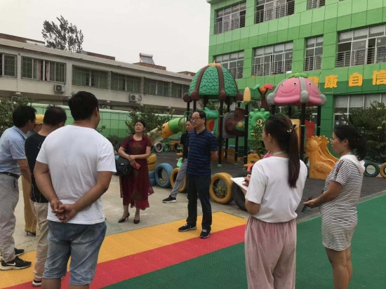 殷建立一一走访各学校、幼儿园,走进学校食堂、门卫值班室、学生寝室、教室、操场,实地察看食品安全以及安防工作。