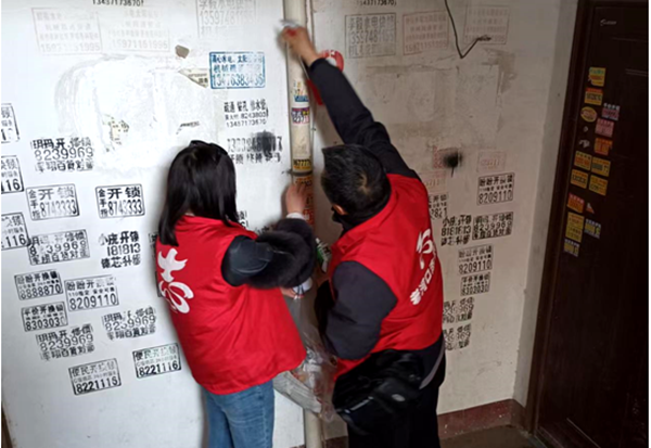 本网讯(通讯员 谢朝庆)3月24日,市公检中心志愿者走进5个包保小区,开展环境卫生清扫,重点清除“牛皮癣”,整治“蜘蛛网“。