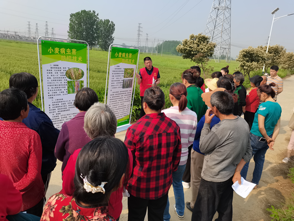 2023年4月19日上午,老河口市农业农村局在张庄村开展小麦病虫害防控技术志愿服务活动。主讲人:李楼农技站 熊雁江