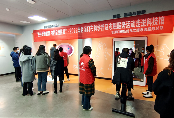 本网讯(通讯员 刘陈程)10月26日,“关注骨骼健康 守护全民健康”2022年老河口市科学普及志愿服务活动走进科技馆“人体之能”展区。