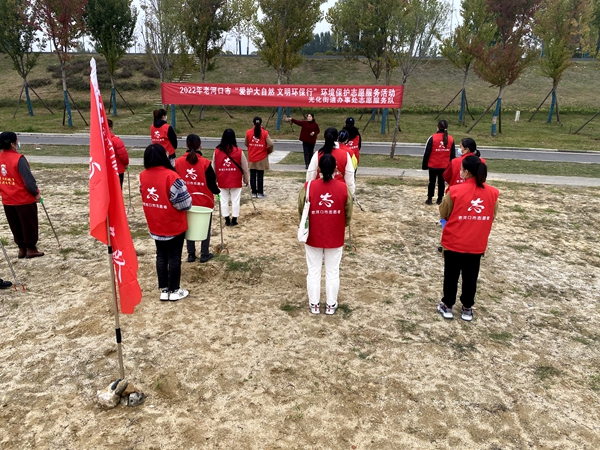本网讯(通讯员 王琳)10月27日,光化街道组织辖区志愿者在江滩公园开展“爱护大自然 文明环保行”环境保护志愿服务活动。