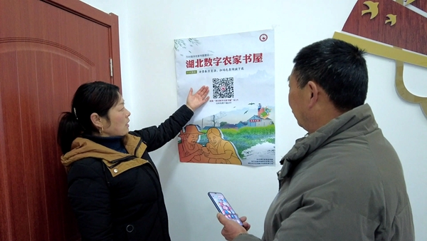 村民们除了可以在书屋内阅读外,还可以用手机扫码下载书香荆楚APP,实现一机在手,掌上海量阅读。