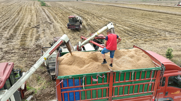 本网讯(全媒体记者 李闻 余林)连日来,不间断的降雨给小麦收获带来极大不便。孟楼镇千方百计调度农机具,发布作业信息和天气预报,利用降雨间歇期,抢抓时机,与时间赛跑组织抢收。
