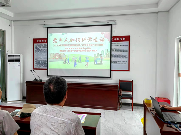 在活动现场,工作人员播放了《老年人如何科学运动》《合理安排运动时间》等视频讲座,引导老年人合理安排运动时间,科学健身。市一医院专家还通过PPT教学,用图文并茂的方式和通俗易懂的语言为老年人讲解《科学健身助力老年健康》等老年健身知识。