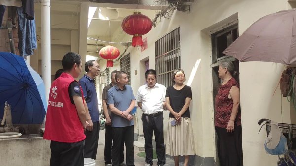 文明帮扶志愿服务队的成员单位和“双报到”单位的同志分为五组,为高潮社区 10户困难群体送去方便面、矿泉水等消暑物资。