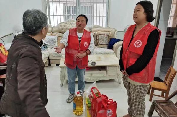 本网讯(通讯员 李志强 刘玉)中秋、国庆“两节”来临之际,9月27日,酂阳街道高潮社区干部走访慰问辖区3户失独家庭,为他们送去节日祝福和慰问品。