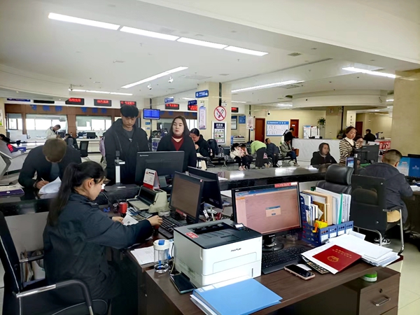 “新年好!请问您要办理什么业务?”在市民服务大厅不动产登记中心窗口,办理和咨询不动产登记业务的群众络绎不绝。一大早,市不动产登记中心的全体干部职工便提前到岗,开展环境卫生清洁,调试办公设备。工作人员耐心细致地与前来办理业务的群众沟通,指导办理相关业务。