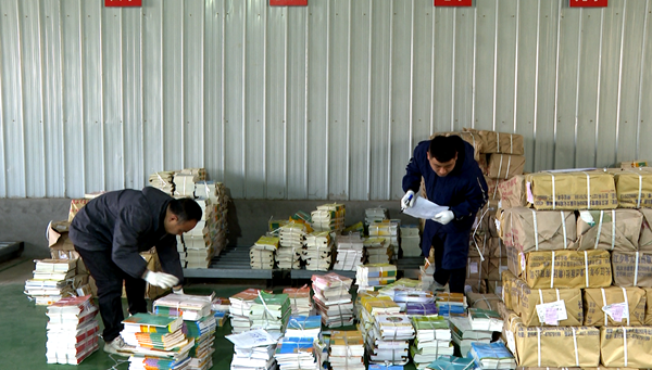 近日,记者来到市新华书店储运中心,看到新华书店员工正在忙着搬运、分类、清点、打包、分发新课本。