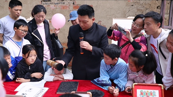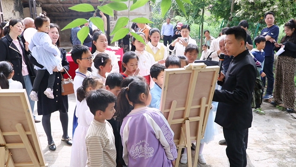 走进大堰村文化广场,便看见一幅幅精美的木版年画呈现在人们眼前。孩子们穿着传统汉服,聚精会神地了解木版年画艺术人文特点,亲手印制木版年画,感受传统文化的魅力。