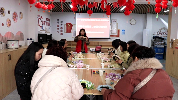 本网讯(全媒体记者 汪思迪)3月7日,酂阳街道东启街社区开展非遗簪花手工制作活动。社区居民齐聚一堂,共同制作传统簪花,于指尖流转间感受非遗魅力。