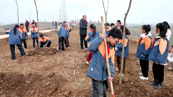 鲍河村村委委员贺红梅说:“我已经连续5年参加义务植树活动了。种下一棵树,守住一片绿,我觉得这个活动非常有意义,以后每年我都会坚持参加。”