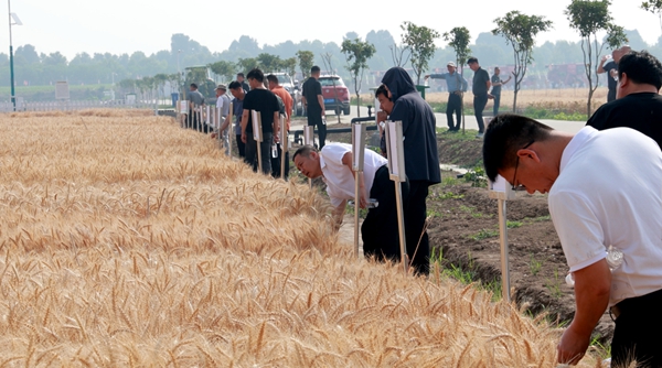张集科研示范基地占地560亩,目前共展示、示范83个小麦品种,其中“垦麦58”“垦麦008”等我省自主培育小麦新品种表现亮眼。“老河口市小麦种植面积达50多万亩,今年测产最高亩产达688.3公斤,亩产稳中有升。这不仅源于张集科研示范基地在良种培育上的持续发力,也离不开农技专家们定期抗旱巡防。”市农业农村局农艺师付奇伟在现场介绍。