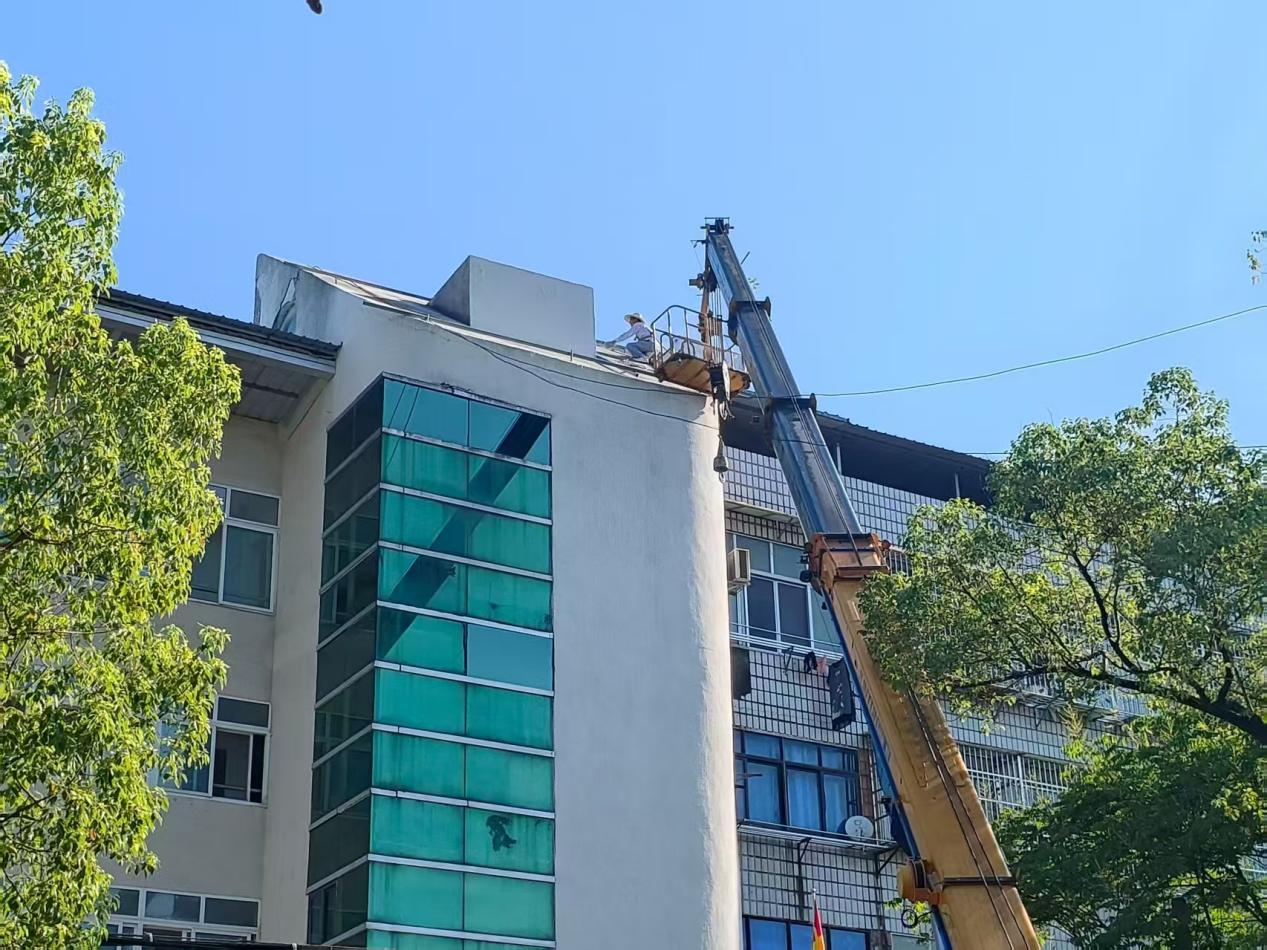 确定方案后不到两天时间,市招商服务中心办公楼楼顶的钢构便顺利搭建完成,崭新的钢构顶棚就像稳稳的“安心顶”,居民再也不用担心家中漏水了。