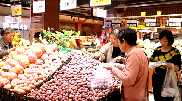 好邻居超市行政处长王欢说,为应对消费高峰,我们提前3天启动备货。生鲜品类(备货量)较平时增长40%,新鲜的蔬菜、水果保质保量。日常民生用品供应充足,还有100多个品种的节日礼盒,能满足广大居民朋友一站式采购需求。