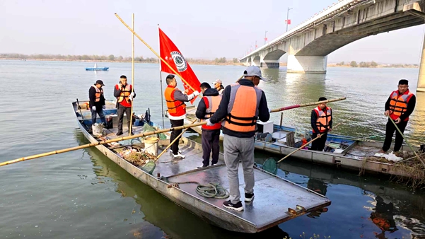 活动中,志愿者们在滨江公园向市民宣传生态环保知识、清理河岸垃圾,并与渔政执法中队联合进行河道漂浮物清理。