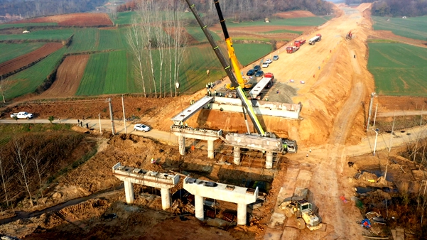 本网讯(全媒体记者 郭哲达 余林 通讯员 高伟)????近日,记者在老河口江山重工至241国道丹江口段道路施工场地看到,施工人员正在对1标段付家寨一桥进行梁板吊装,2标段道路修建已完工。施工方正在抢抓当前晴好天气,对1标段加快施工进度,现场一片忙碌景象。