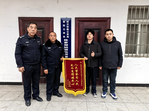 本网讯(通讯员 程浩山 陈俊灵)1月14日,来自十堰市茅箭区的青年小牛(化名)专程乘坐火车抵达我市,将一面印着“人民警察为人民 失而复得暖民心”字样的锦旗送到驻我市襄阳公安处陈家湖站派出所,对该站派出所民警及市护路办快速帮其找回遗失的单反相机表示衷心感谢。