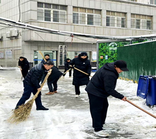 一大早,全体党员干部充分发挥先锋模范作用,主动冲锋在前,齐心协力迅速将单位周边主要干道、门前公共区域、后院院落等处的积雪积冰铲除干净,确保过往车辆、周边居民、来往残疾人朋友办事便捷,出行安全。