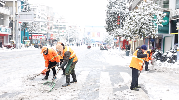 市环境卫生管理处党总支书记、主任陈静介绍,从昨天下午到目前,已累计出动环卫人员700余名,车辆机械设备15台套,快速循环清理道路积雪,筹备工业盐抛洒施工作业,防止道路结冰,全力保障市民出行安全。下一步,我们将密切关注天气变化,24小时待命,持续全力“迎战”低温雨雪冰冻天气。