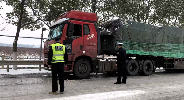 本网讯(通讯员 张鹏)1月19日的降雪和降温,导致328国道路面迅速凝结成冰,光滑的冰面导致过往货车纷纷打滑滞留,绵延的车流在风雪中停滞不前。面对突发险情,市交通运输综合执法大队以雪为令、闻险而动,执法人员顶风冒雪奔赴一线,用坚守与温情为滞留司乘人员筑起“平安防线”,在冰天雪地里书写了交通人的责任与担当。