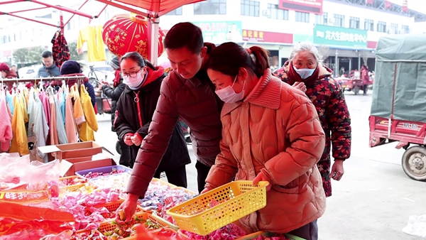 市民杨静说,快过年了,带孩子一起来逛逛农贸大集,买点糖果之类的,再选几副春联。这里东西全、气氛好,一趟就能把年货备齐。