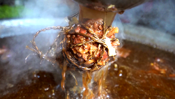 更具巧思的是,老手艺人们会用龙须草层层拴住,既为增添清冽的香味,更让缠蹄的口感层次更丰富,每一道工序,都是时光沉淀的匠心。