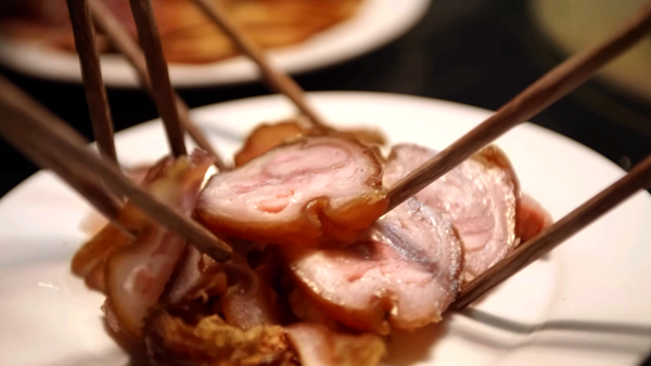在老河口,缠蹄是逢年过节餐桌上的“C位”美食,更是家家户户对新春的美好期许,寓意“锁住福气、缠住好运”。这道卤味的诞生,藏着古人的生活智慧。明清时期,人们为长久保存肉食,以盐腌、绳缠的方式造就了这道独特风味,历经数百年,工序依旧考究,分毫不得马虎,成为老河口珍贵的民间美食技艺。