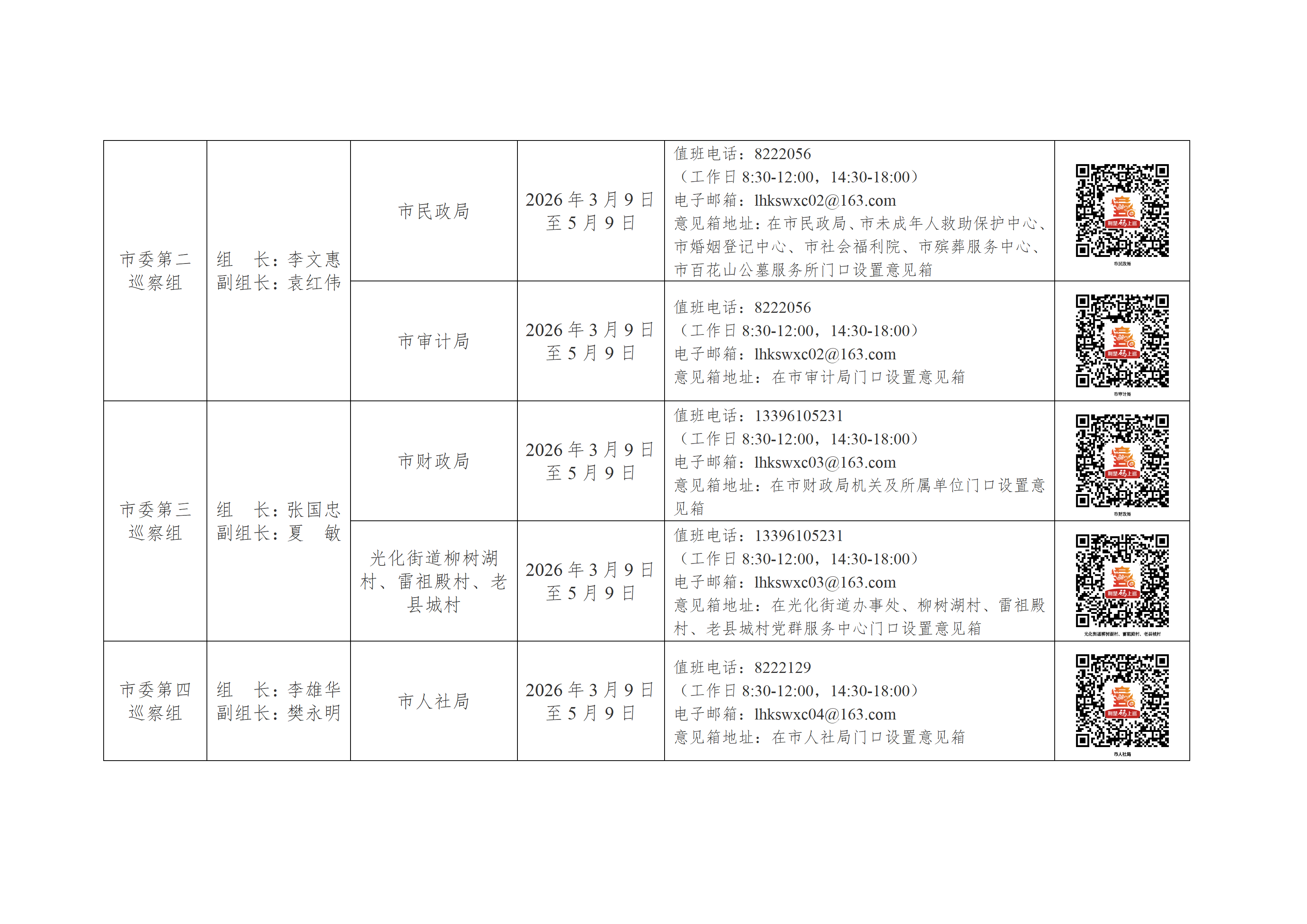 据悉,本轮巡察期间,各巡察组分别设置值班电话、电子邮箱、意见箱,开通“荆楚码上巡”线上反映问题渠道,主要受理反映被巡察单位党组织领导班子及其成员、下一级党组织领导班子主要负责人和重要岗位党员干部问题的来信来电,重点是关于违反政治纪律、组织纪律、廉洁纪律、群众纪律、工作纪律和生活纪律等方面的举报和反映。巡察组受理信访时间截止到2026年4月30日。