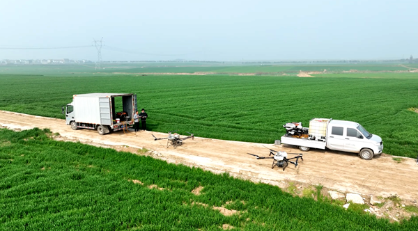 整个喷洒过程不仅让小麦受药更均匀,高效环保,农药利用率还能提高30%以上。当地村民都欢迎这种先进技术。