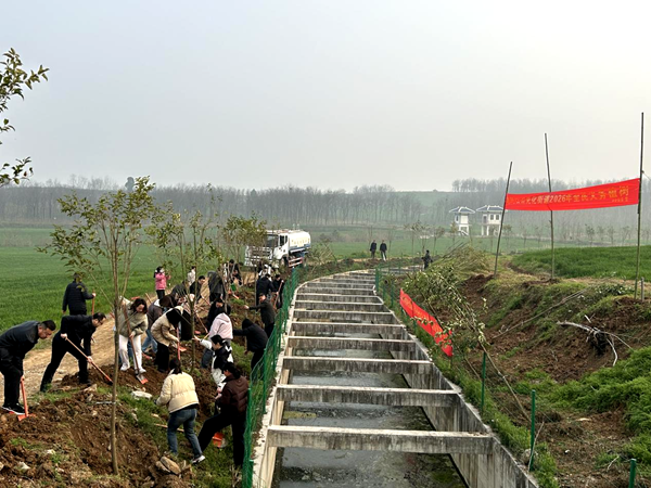 本网讯(通讯员 王雁 解将将)春和景明,万物复苏。3月12日,在第48个植树节当天,光化街道组织干部职工、志愿者及查营村村民代表,前往查营村高干渠附近开展义务植树活动,以实际行动践行生态文明理念,为高干渠沿岸增添新绿,助力我市2026年生态建设部署落地。