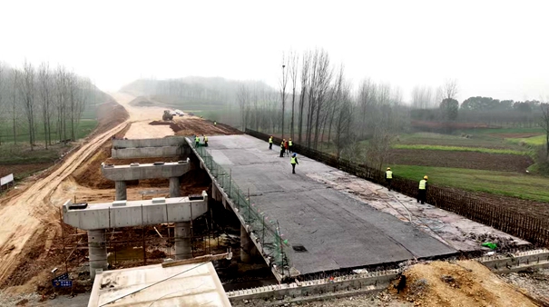 项目经理庞家岑介绍,老河口江山重工至241国道丹江口段道路1标段全长4.8公里,已完成4.8公里路基土石方及杨家湾桥、付家寨桥半幅梁板吊装施工,目前正在进行挡土墙砌筑及桥面铺装施工。上半年计划完成4.8公里路床调平碾压,杨家湾桥、付家寨一桥全幅通车,苏家河桥半幅通车,为下半年路面施工做好准备。
