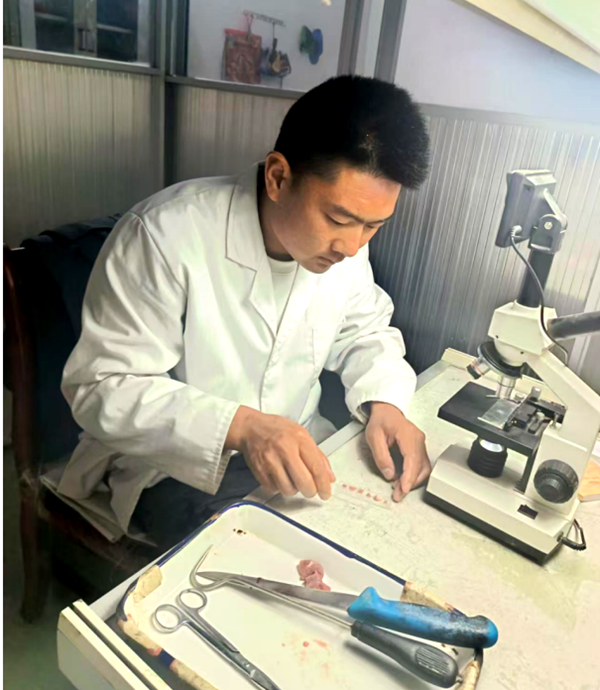 “清明期间畜禽产品消费需求增加,我们必须打起十二分精神,把好每一道检疫关口。”兽医周华健说道。