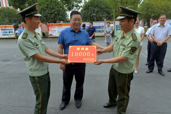 “就要到'八一'了,提前祝你们节日快乐!”郑德安一行首先来到市人武部,看望慰问我市人武部官兵,对人武部多年来认真履行职责,积极参与地方各项事业建设,为我市经济发展与社会和谐稳定所做出的贡献表示感谢。郑德安希望人武部官兵加强队伍建设,切实提高本领,积极参与地方建设,为我市各项事业建设做出新的更大的贡献。