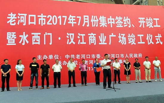 本网讯(记者 程庆卫) 7月31日上午,我市隆重举行2017年7月份集中签约、开竣工暨水西门汉江商业广场竣工仪式。市委书记、市人大常委会主任郑德安出席仪式并宣布项目集中开竣工(如图)。
