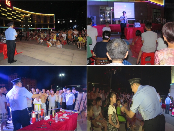本网讯(通讯员 宏伟 杜静)8月14日20时许,水西门汉江广场,市公安局和平路派出所安排15名民警,利用群众纳凉时间开展安全防范宣传,将“心防”工程开展到群众身边。民警通过播放宣传视频、讲解案例和实物展示相结合的方式,为在广场纳凉的约200名群众送上了一份安全防范大餐,受到欢迎。