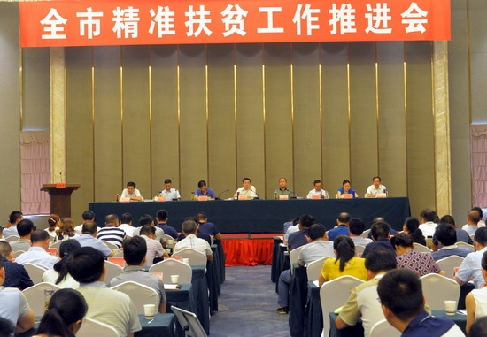 郑德安要求,要强化看齐意识,把扶贫攻坚作为重大政治任务和第一民生工程来抓,以高度的政治自觉合力打赢“精准脱贫攻坚战”,确保扶贫工作走在襄阳前列。要对标“六个精准”和“五个一批”要求,以扶贫攻坚“1+8”实施方案为抓手,在精准施策上出实招,在精准推进上下实功,在精准落地上见实效。要扎实推进产业扶贫,培育产业是推动脱贫攻坚的根本出路。要按照“政府推动、市场运作、龙头带动、政策扶持、资源融合、加快发展”的思路,把增强“造血”功能作为根本,通过深挖各地优势资源,大力发展扶贫产业,着力解决贫困村、贫困户经济收入可持续发展问题,确保贫困户脱贫不返贫。要重视贫困群众的主体作用,要在调动贫困群众脱贫积极性、激活内生动力上下功夫,注重扶贫与扶志、扶智相合,引导他们依靠自己勤劳致富脱贫,防止出现“好政策养懒汉”的现象。郑德安强调,要扎实推进政策扶贫。要紧盯“四大任务”:一是要持续提高农村低保保障标准和农村五保对象供养水平,对于完全或部分丧失劳动能力的贫困人口,要由社会保障来兜底,这项工作由民政局抓到底;二是要实行贫困群众先看病、后付费制度,进一步提高报销比例,尽快出台落实贫困人口通过补充商业医疗保险进行兜底的实施办法,这项工作由卫计局负责抓到底;三是要加大教育救助力度,健全学前教育资助制度,落实义务教育、普通高中、高职高专资助政策,实现贫困学生教育资助全覆盖,这项工作由教育局负责抓到底;四是要大力推进危房改造扶贫,要对全市贫困危房户实施危房改造,确保搬得出、稳得住、有事做、能致富。