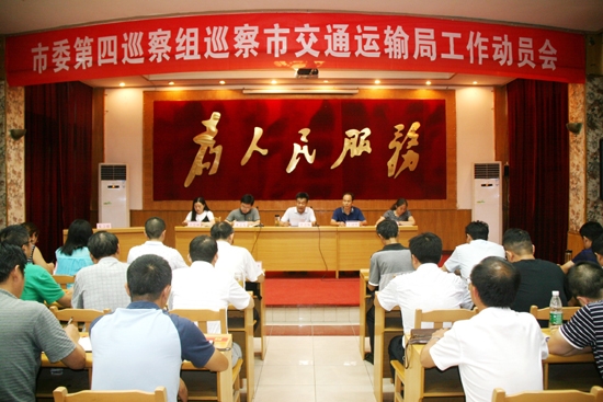 本网讯(特约记者 荷巡轩)根据市委和市委巡察领导小组统一部署,2017年8月25日下午,市委第四巡察组巡察市交通局党组工作动员会召开。会上,市委第四巡察组组长王韶智就即将开展的巡察工作作了讲话,市委巡察工作领导小组办公室副主任米志光就巡察工作提出要求,市交通局党组书记、局长范炜主持会议并作了表态发言(如图)。