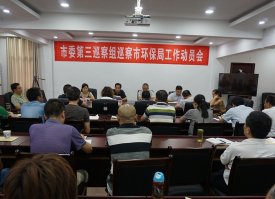 市委第三巡察组全体成员,市环保局党组领导班子成员、全体机关干部、二级单位负责人、离退休老干部代表参加会议。