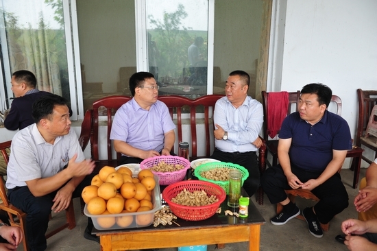 郑德安在王甫洲与花生种植户交谈,了解花生种植情况