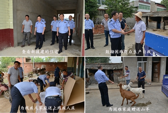 本网讯(通讯员 杨宏伟)9月21日下午,市政府副市长、公安局长何斌带领该局相关工作人员,再次赶到包点扶贫的袁冲乡六官营村,分别深入到4户最困难的帮扶对象家中看望慰问,针对各家不同情况,送上急需物资,帮助他们解决实际困难、扩大生产,争取早日脱贫,受到群众欢迎。