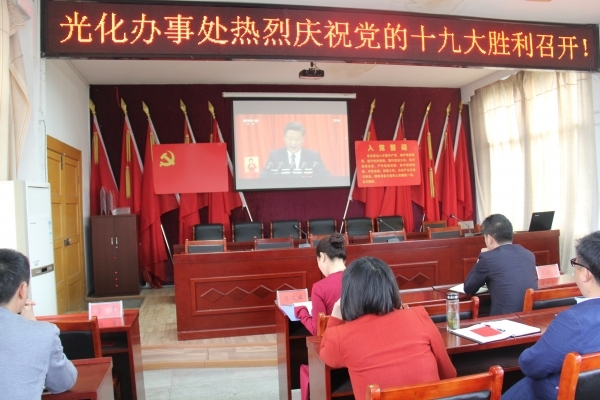 ★ 光化办:10月18日上午9点,光化办事处组织全体党员干部、村(社区)、办直单位分组收看党的“十九大”开幕式实况,认真聆听了习近平所作的大会主题报告。收看结束后,该办广大党员干部纷纷表示将严格按照习近平总书记在报告中的总要求,撸起袖子加油干,以实际行动抓好本职工作,为全办经济社会发展贡献力量,让老百姓的生活越来越幸福。