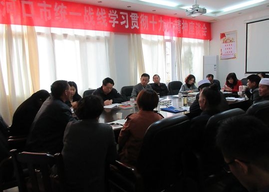 本网讯(见习记者 彭博 通讯员 凌万)11月7日下午,我市召开统一战线学习贯彻党的十九大精神座谈会(如图)。市委常委、统战部长杨红才出席会议并讲话。民革、民建老河口支部班子成员、无党派代表人士、非公有制经济代表人士、各宗教团体负责人、新的社会阶层代表人士参加了座谈会。